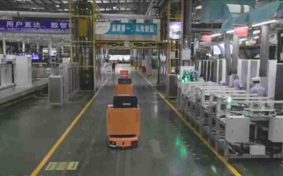 为车载冰箱物流配送打造的智能解决方案,,,,包含产中物流通过潜伏举升AMR搬运至线边,,,,产后成品物流智能仓储,,,,流程包含产中物流智能齐套入库,,线边安灯叫料AMR智能配送至线边,,,,成品入库、、、、出库,,,,通过无人堆高车机器人,,智能仓储管理替代人工作业管理,,,实现更高存储、、更高效率、、、更具柔性化的解决方案。。。。