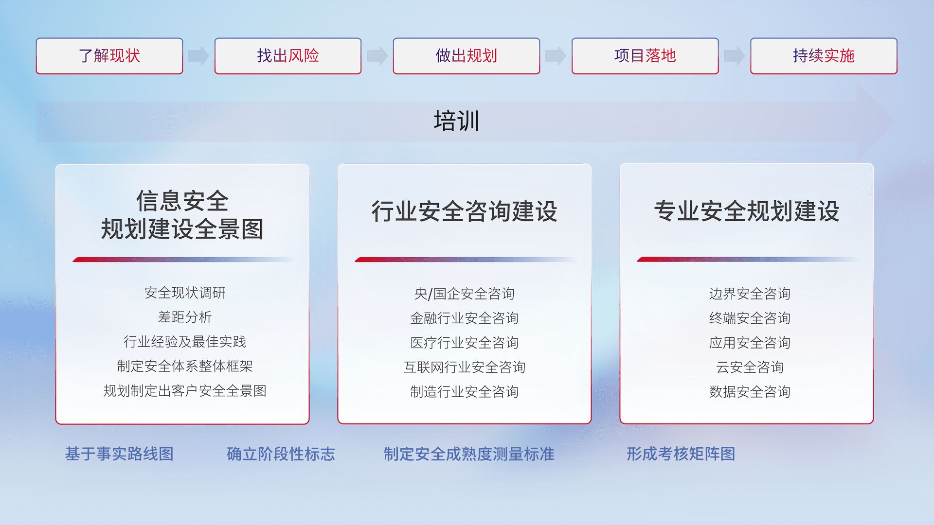 梳理客户信息安全现状调研、、差距分析结果,,结合行业先进经验及最佳实践,,,制订客户的信息安全管控体系总结架构,,,最终形成一个完整的客户信息安全规划与建设的全景图。。。